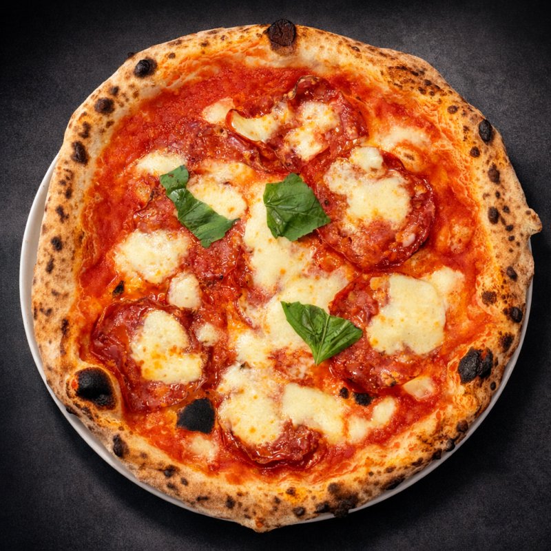 Tomate San Marzano, Fior di latte, Salami piquante