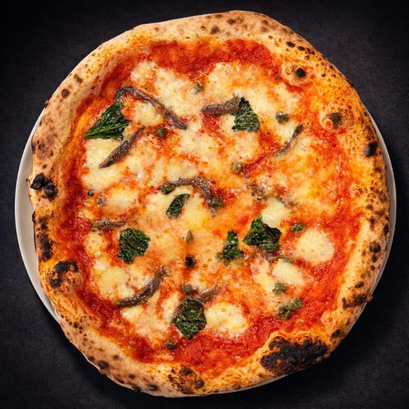 Tomate San Marzano, Fior di latte, Anchois, Câpres