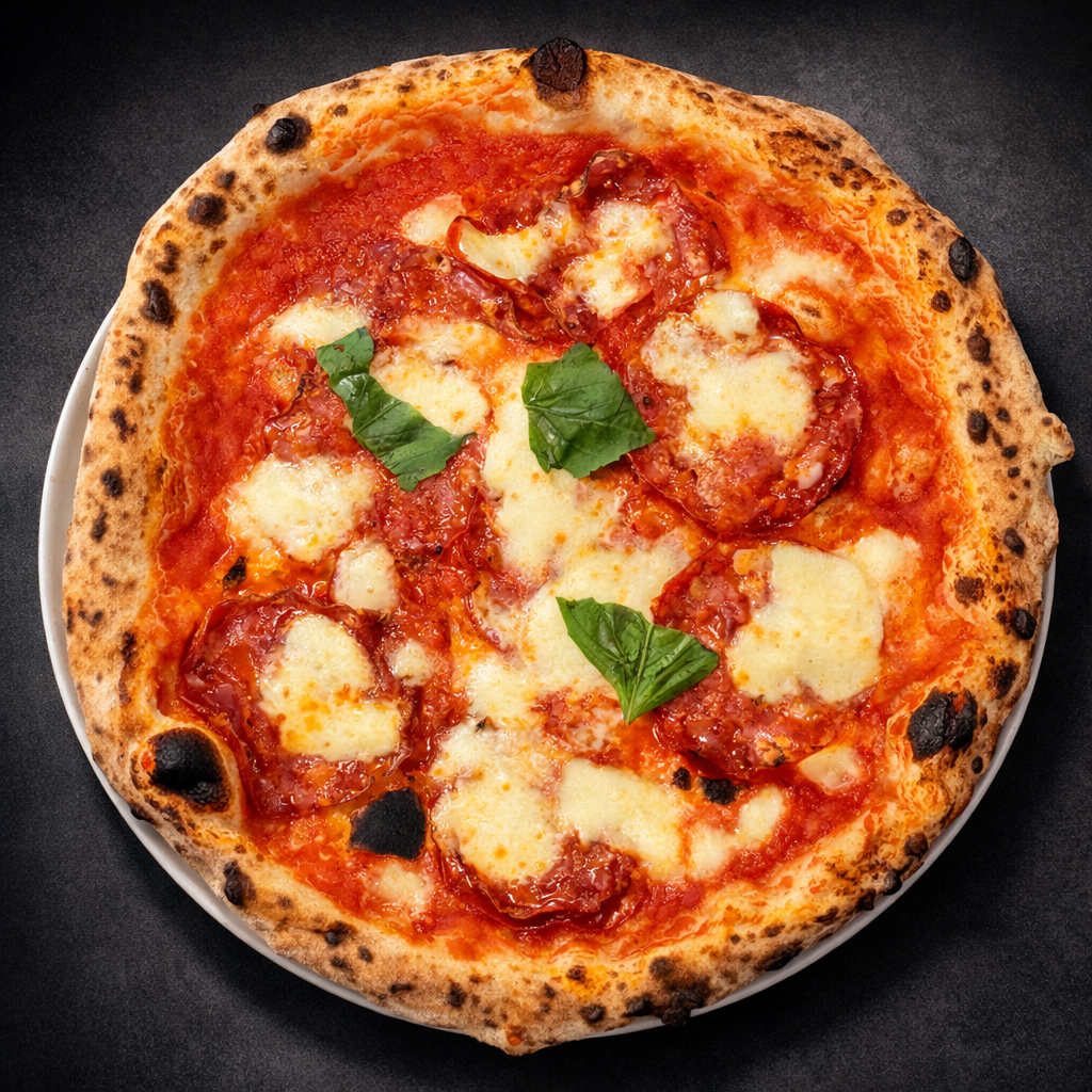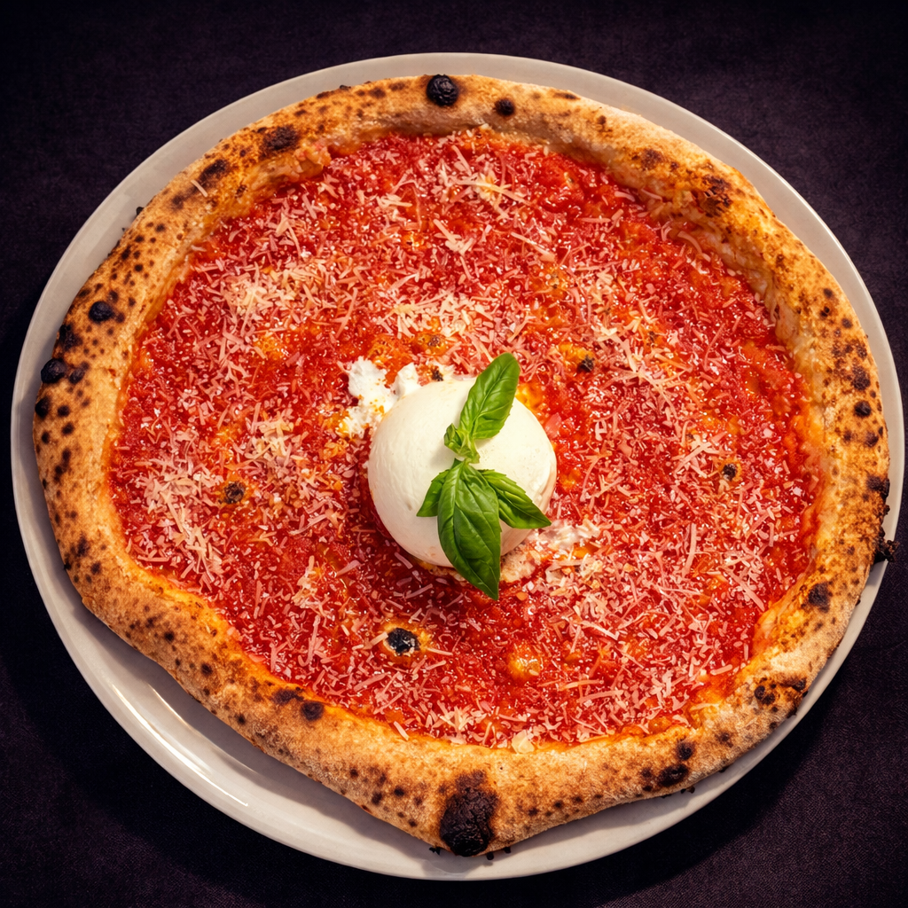 Tomate San Marzano, Fior di latte, Parmesan, Gruyère, Gorgonzola