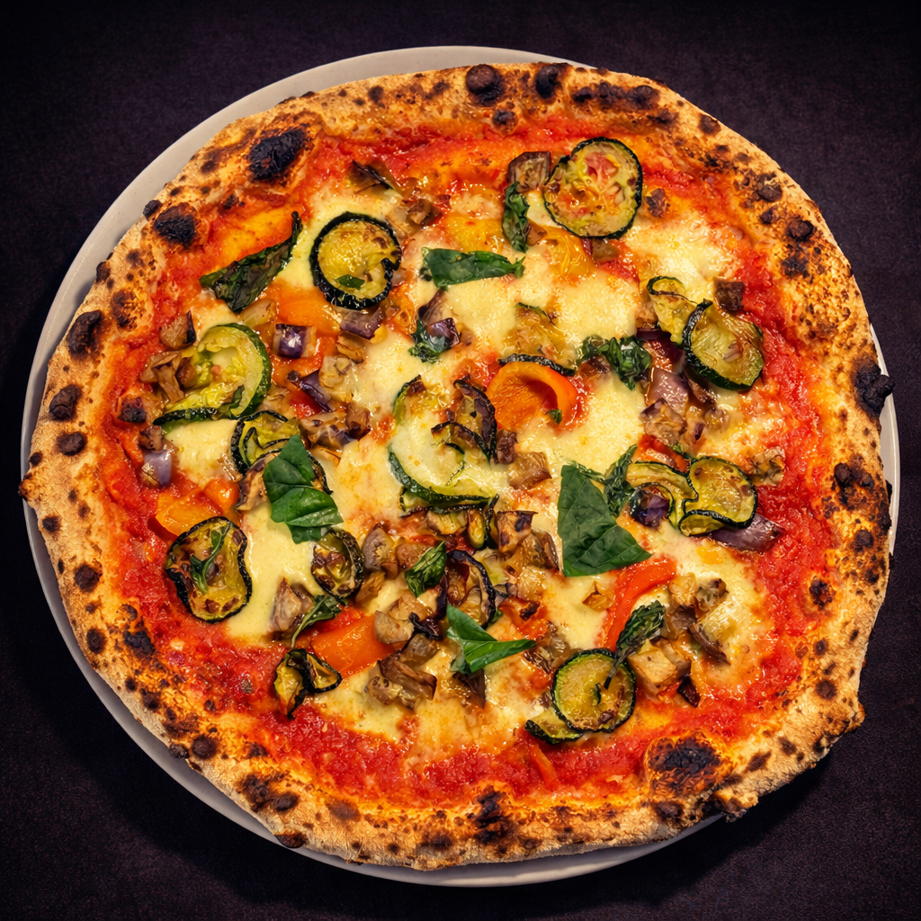 Tomate San Marzano, Fior di latte, Poivrons, Courgettes, Aubergines